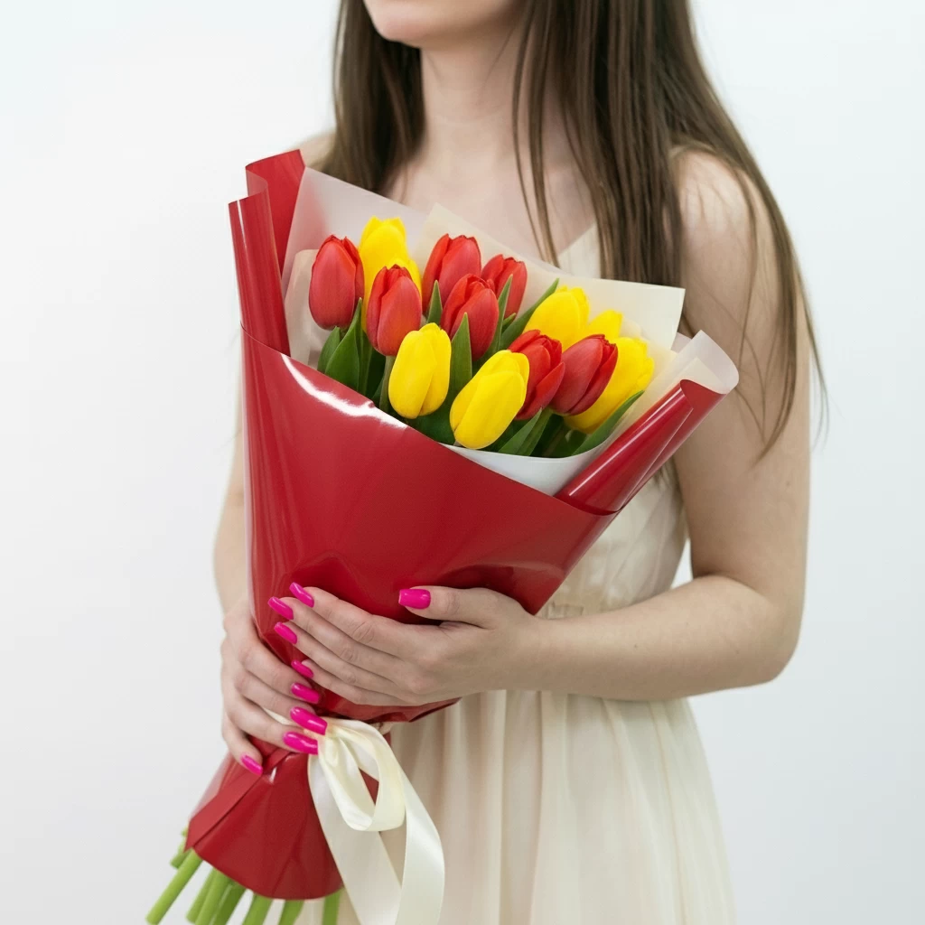 | Подруга | Яркие жёлтые или розовые тюльпаны, 7 или 11 штук |
