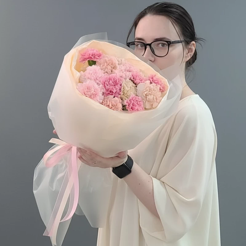15 ароматных диантусов нежно-розового оттенка — это не просто цветы. Это медитация в вазе. Мягкий, пастельный розовый цвет успокаивает, расслабляет, настраивает на добрый лад. Каждый пушистый бутон дышит нежностью, каждый стебель несёт в себе ощущение умиротворения.