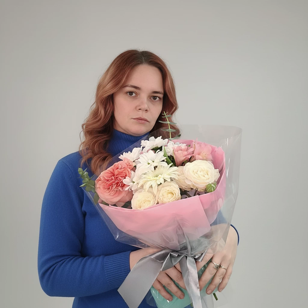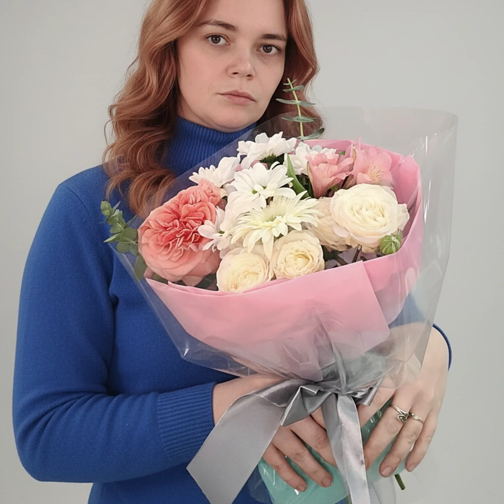 Этот букет — настоящая флористическая симфония, в которой каждый цветок ведёт свою партию, но вместе они звучат гармонично и проникновенно.