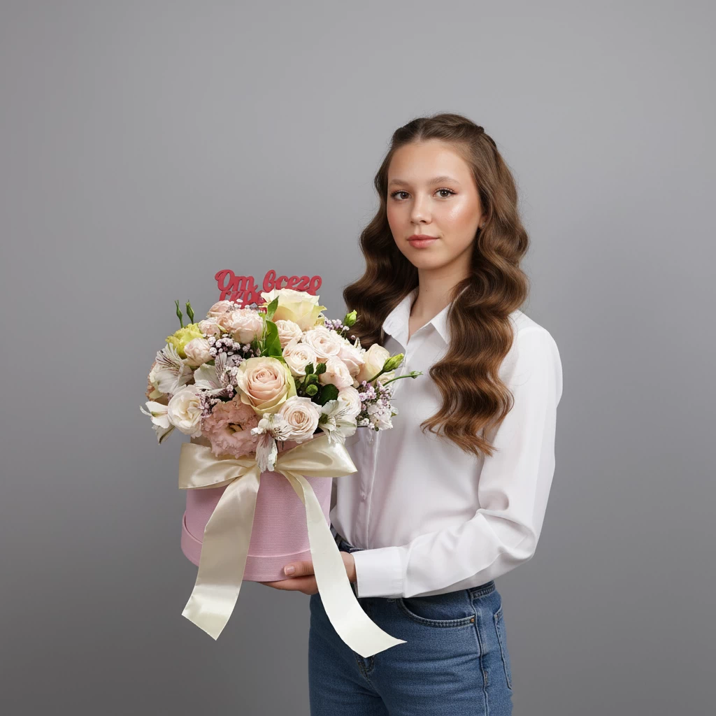 💡 Совет: Шляпная коробка не требует вазы — это полностью самодостаточный подарок. Просто добавьте немного воды внутрь, и цветы будут радовать долгое время.
